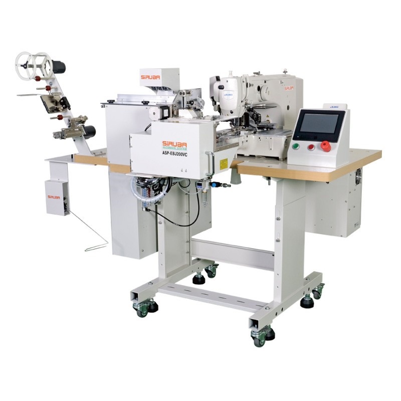Siruba ASP-EBJ200 to wysokowydajna, w pełni automatyczna maszyna do szycia przeznaczona do łączenia płaskich gumek w zamknięte obwody, idealna do produkcji bielizny takiej jak slipy, majtki, bokserki czy topy. Maszyna automatyzuje cały proces łączenia gumek, w tym dokładne mierzenie, cięcie, składanie oraz szycie, zapewniając stałą jakość i wysoką efektywność przy minimalnym udziale operatora.
