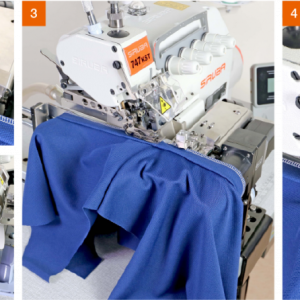 Siruba ASK-ACS200 to specjalistyczna 4-nitkowa cylindryczna owerlokowa maszyna do szycia, zaprojektowana specjalnie do obszywania kołnierzyków (stójki) w koszulkach typu T-shirt. Zaawansowane urządzenie łączy w sobie precyzję, szybkość oraz automatyzację, zapewniając wysoką jakość szycia, co czyni je idealnym rozwiązaniem dla masowej produkcji odzieży. Specjalne wyposażenie umożliwia automatyczne pozycjonowanie kołnierza przed szyciem, co znacznie redukuje pracę manualną i zwiększa efektywność, jednocześnie zapewniając dokładne dopasowanie każdego elementu.