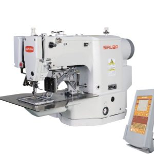 Siruba BT-630Q-01E to elektronicznie sterowana, uniwersalna i programowalna ryglówka 2-nitkowa, zaprojektowana do szycia materiałów lekkich i średnich. Maszyna oferuje duże pole pracy 80 x 60 mm, co czyni ją idealną do szycia powtarzalnych wzorów, takich jak metki, rzepy czy zapięcia. Specjalna stopka zapobiega unoszeniu się materiału podczas szycia, zapewniając precyzyjne i estetyczne ściegi.