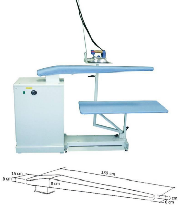 Stół do rozprasowywania szwów nogawek spodni z odsysaniem i podgrzewaniem elektrycznym. Posiada regulację temperatury stołu za pomocą termostatu. Ma też wbudowany odsysacz. W skład zestawu wchodzi: podkładka silikonowa pod żelazko oraz drążek trzymający przewody.