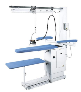 Profesjonalny stół prasowalniczy posiadający uniwersalną deskę z możliwością regulacji wysokości. Odsysanie, wbudowany komin oraz podgrzewanie elektryczne sprawiają, iż prasowana na nim odzież zachowuje swoją jakość. Regulacja temperatury stołu za pomocą termostatu pozwala na ciągłą kontrolę temperatury blatu. Dodatkowym atutem jest wbudowany nadmuch ułatwiający prasowanie delikatnych tkanin.