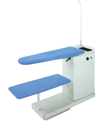 Stół prasowalniczy uniwersalny z odsysaniem i podgrzewaniem elektrycznym. Regulacja temperatury stołu za pomocą termostatu, z możliwością podłączenia odsysania centralnego. Zestaw składa się podkładki silikonowej pod żelazko oraz z drążka podtrzymującego przewody.