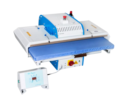 Profesjonalna termopodklejarka pneumatyczna z płytą roboczą o wymiarach 125 x 50 cm. Wyposażona w regulację siły docisku poprzez reduktor i manometr. Programator elektroniczny do regulacji czasu docisku oraz temperatury płyty ułatwia i usprawnia pracę. Dwa przyciski bezpieczeństwa chronią przed przypadkowym zamknięciem płyty.
