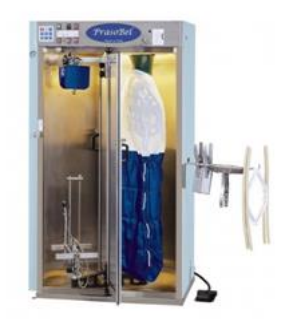 Rama do zawieszenia wieszaków wewnątrz kabiny, przeznaczona do organizacji odzieży podczas procesu prasowania lub wykańczania. Zapewnia wygodne rozmieszczenie ubrań oraz ułatwia pracę operatora.